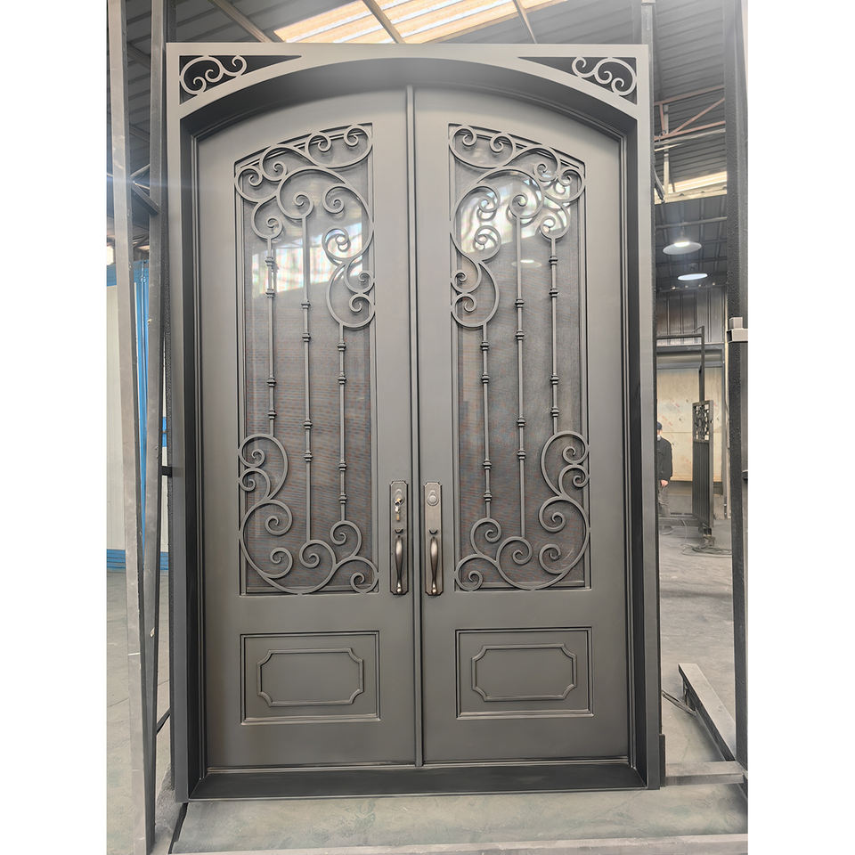 Portes Fer Forgé Double Acier Portes d'Entrée Extérieur Fer pour Maison Métal Verre Design Graphique Moderne Antivol Manuel 5 Ans