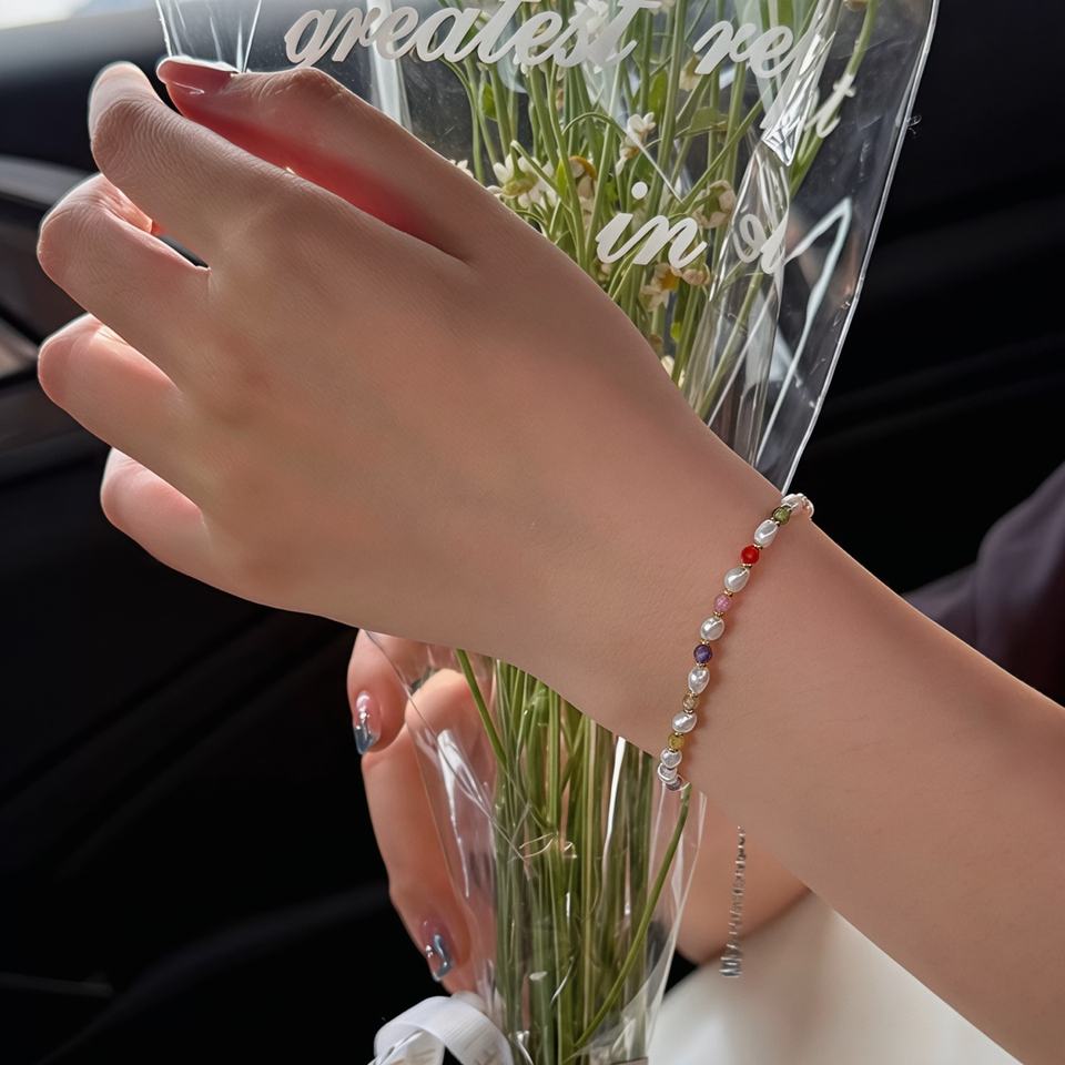 Dopamine Colored Zirconium Baroque Natural Freshwater Pearl Bracelet Necklace Versatile Best Friend Luxury Niche Design