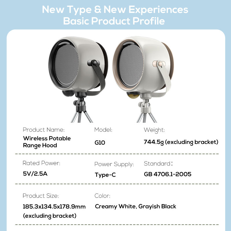 Hotte de cuisine portable à angle réglable Dopapod G10, 2000 mAh, hotte de table pour barbecue d'intérieur, hotte de cuisson pour fondue