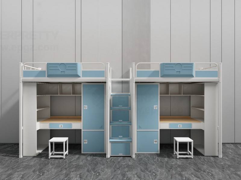 Mobilier pour dortoir Lit mezzanine à cadre métallique pour étudiants Adolescents avec tiroirs de rangement Escalier et penderie pour chambre d'école