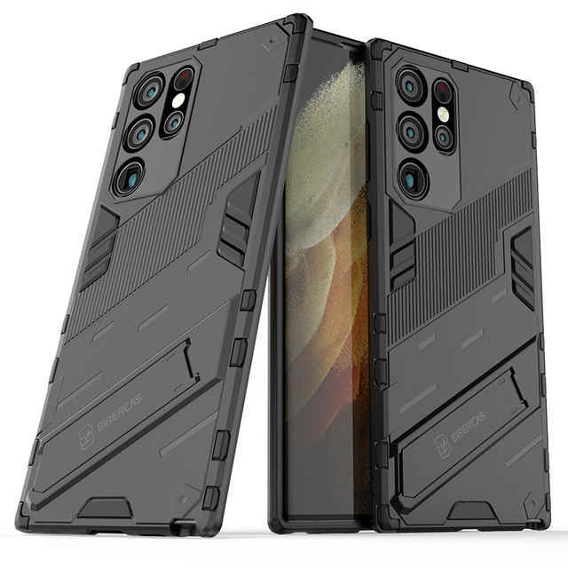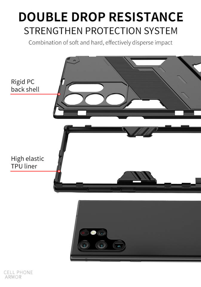 Double 2 in Phone Case Kickstand Shockproof Soft Plastic Hard PC Case Pour Samsung Galaxy S22 Ultra S22Pro M52 5G