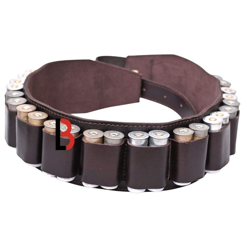 Double Barreled Shotgun Shell Belt in Sheep Skin with Steel Buckle 4.5cm Width Heat-Transfer Printed Design