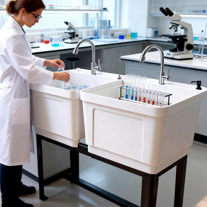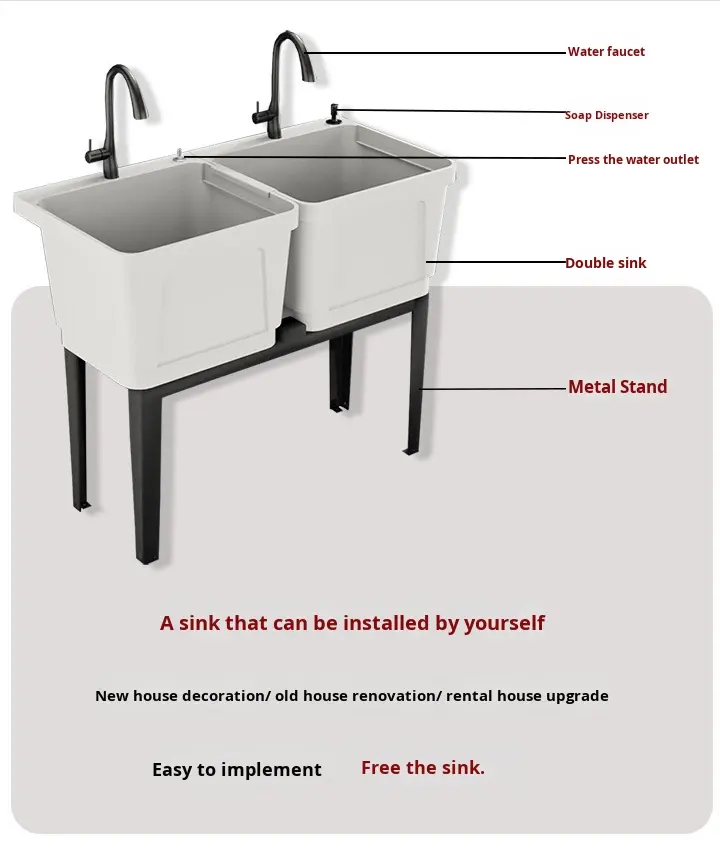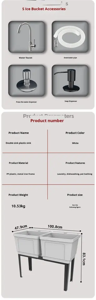Lavabo double vasque en plastique PP écologique et facile à nettoyer pour hôtels, avec meuble sous-vasque pour salle de bain