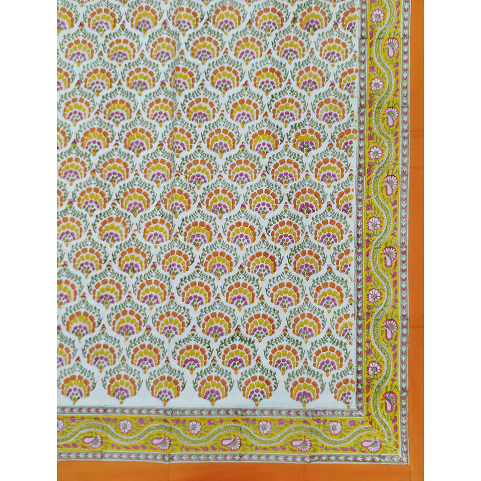Drap plat géométrique en coton 200TC blanc et orange imprimé à la main, respirant, pour usage domestique, hôtelier et élégant