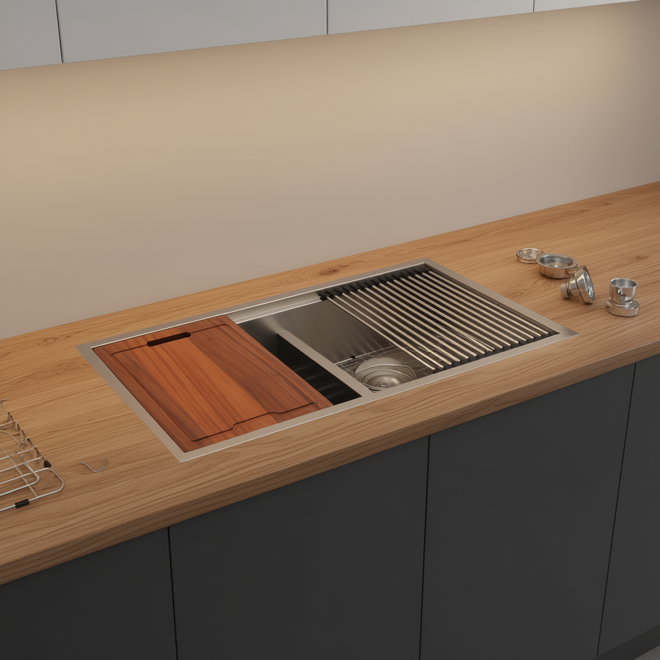Évier de cuisine double à encastrer 33x19 en acier inoxydable 16 gauge finition brossée style ferme