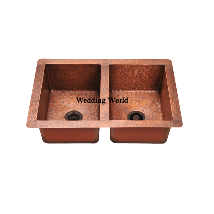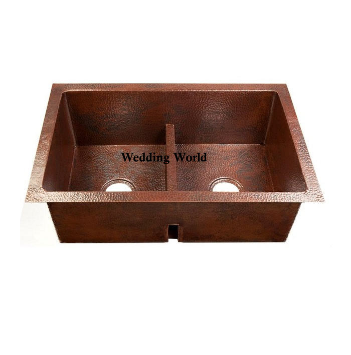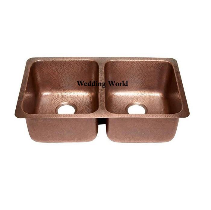 Évier en cuivre à double cuvette de haute qualité fait à la main Designer Wholesale Basin Hot Selling Kitchen Ware Undermount Copper Sink