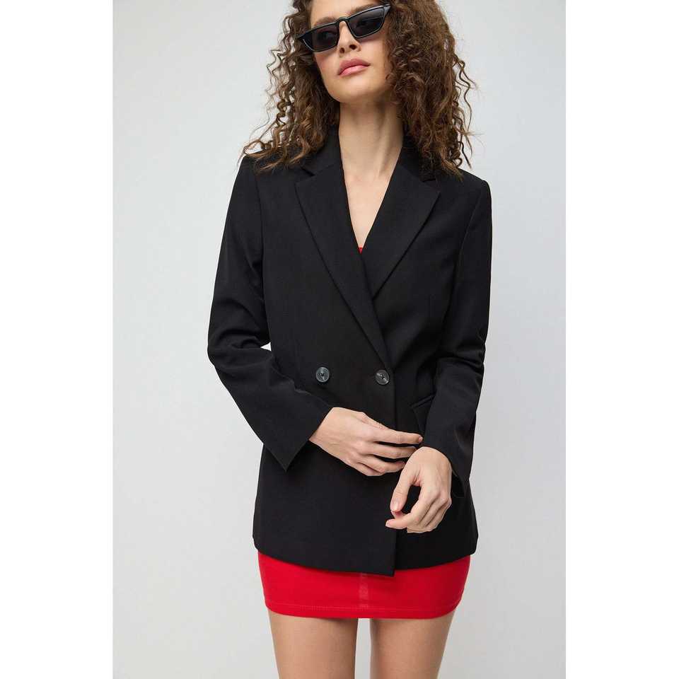 Blazer à double boutonnage col rond 100% polyester style quotidien