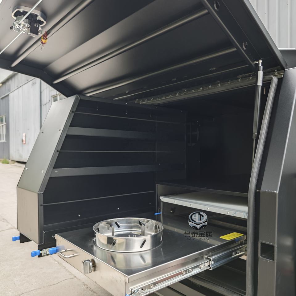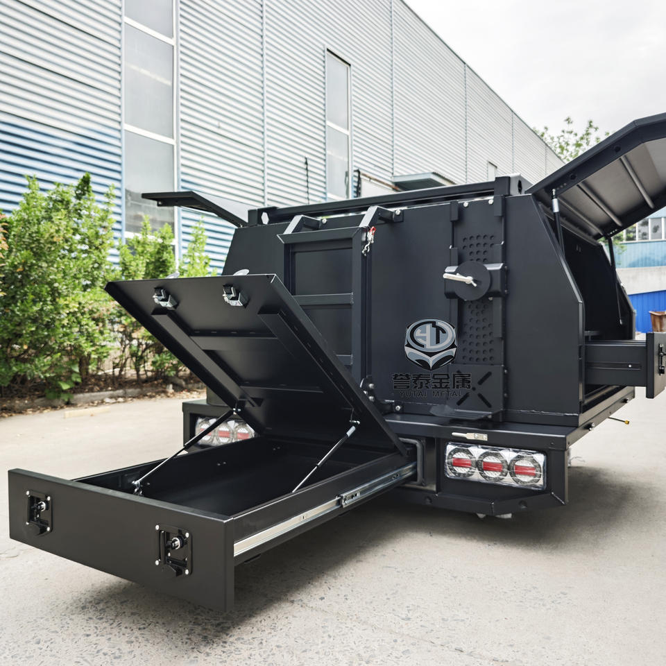 Plateau Ute en aluminium à double cabine avec tiroir garde-manger et glissière pour réfrigérateur