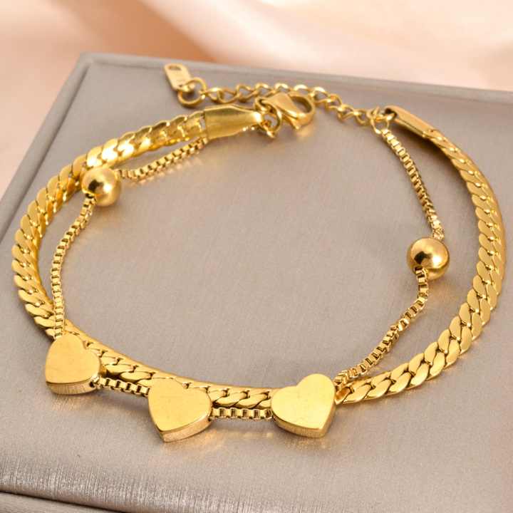 Bracelet à breloques pour femme en acier inoxydable à double chaîne avec zircon, plaqué or 18 carats, design géométrique, pour cadeaux