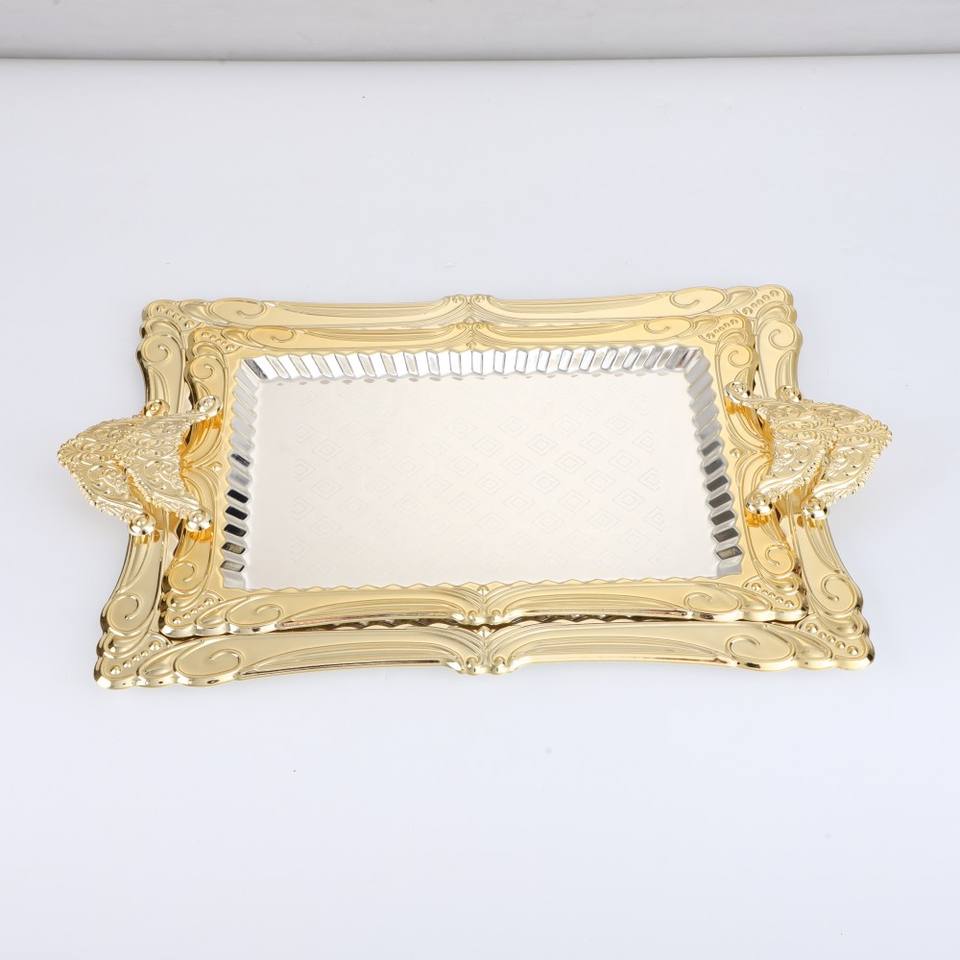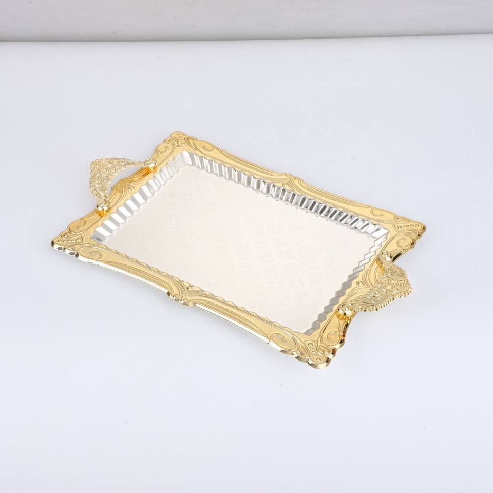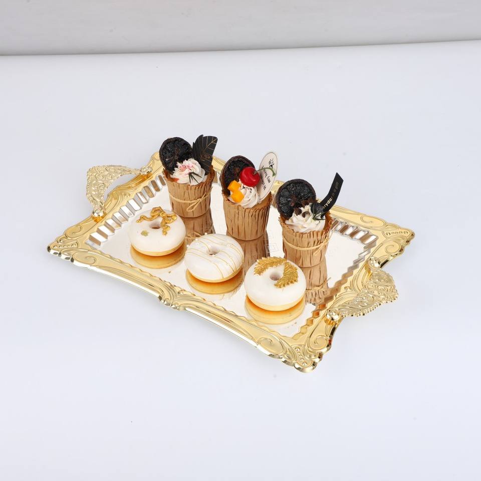 Plateau à fruits en métal sculpté bicolore Plateau de service rectangulaire latéral rond avec design élégant en fer