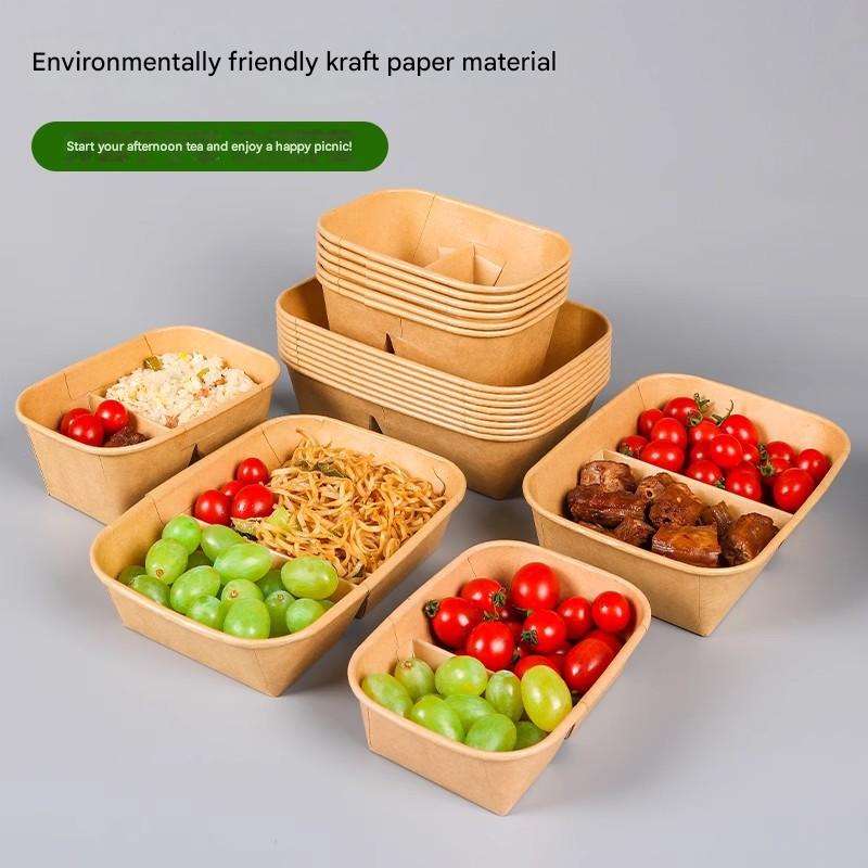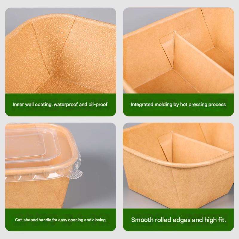 Boîte à lunch carrée à double compartiment en papier kraft écologique auto-élevable, vaisselle jetable, compatible chauffage et réfrigération