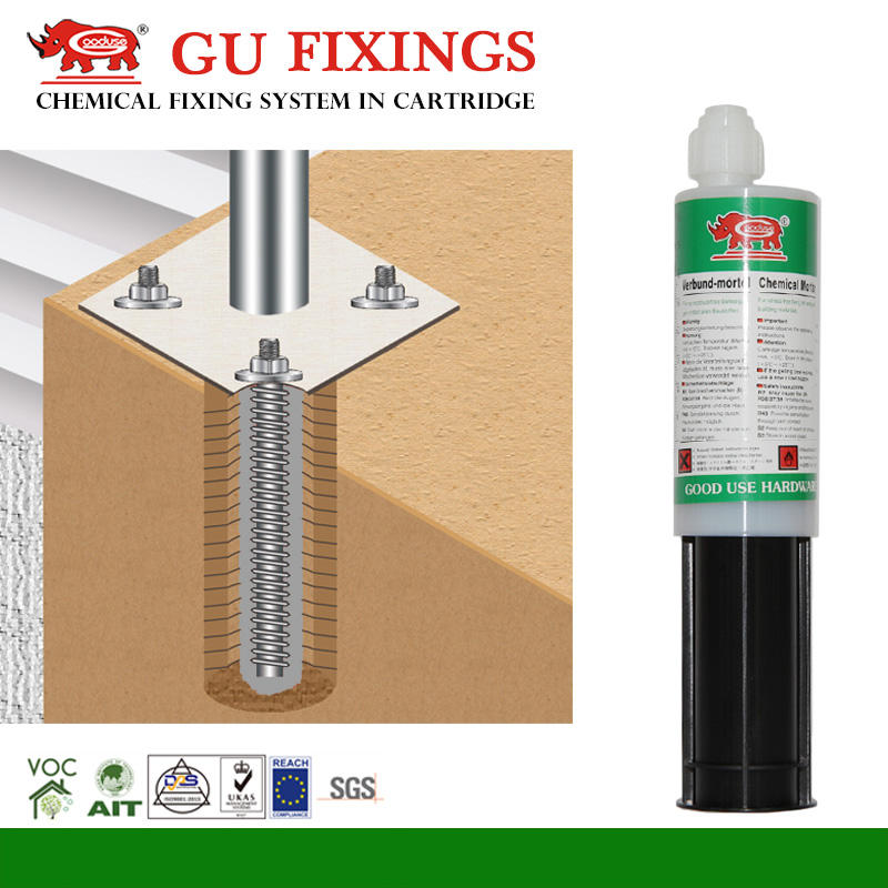 Ancrage chimique bicomposant avec mortier d'injection à prise rapide et économique pour la construction et le fixation des armatures