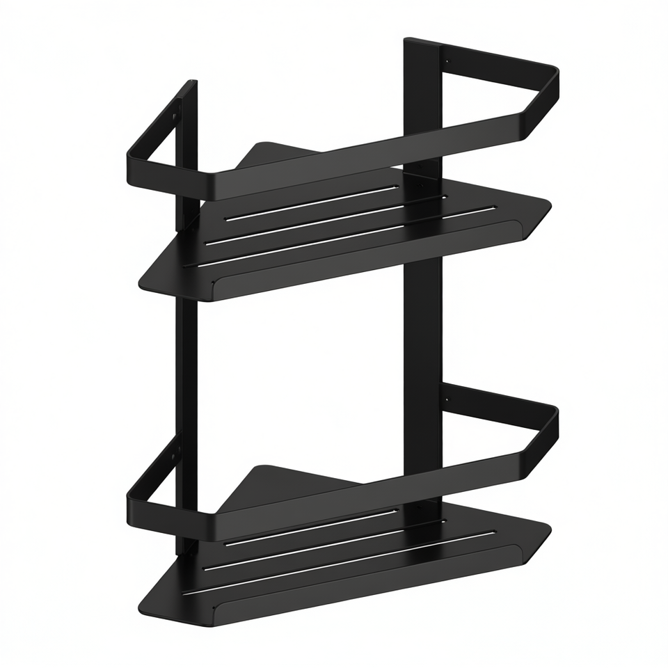 Étagère de douche d'angle double, largeur 29,5 cm, noir mat, support de rangement pour salle de bain