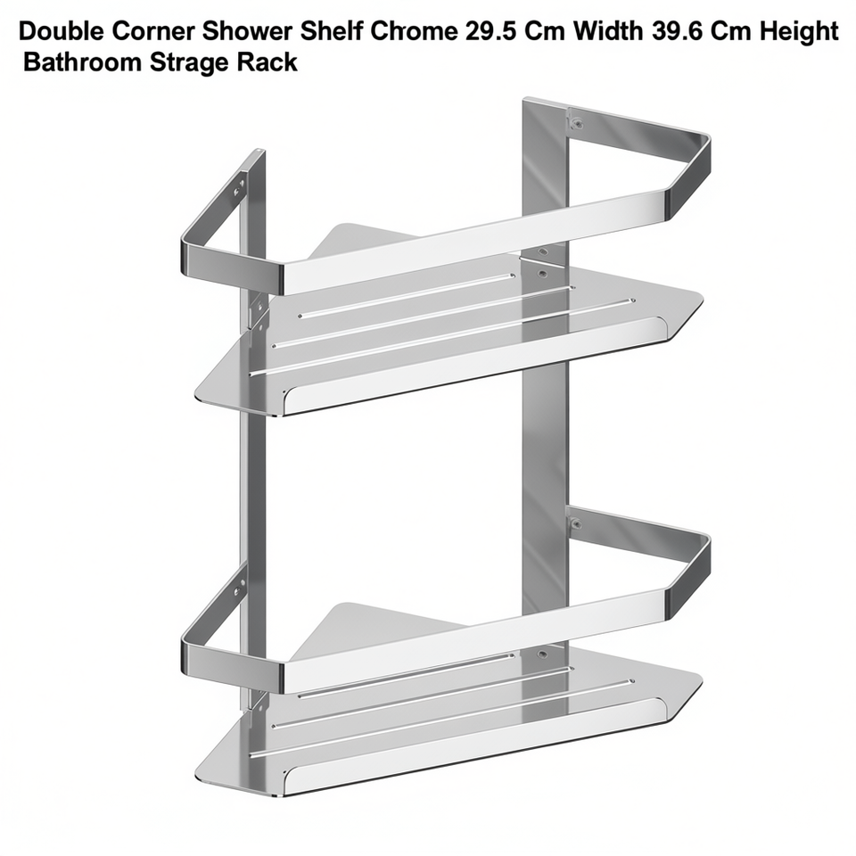 Étagère de douche d'angle double chromée, largeur 29,5 cm, hauteur 39,6 cm, support de rangement pour salle de bain