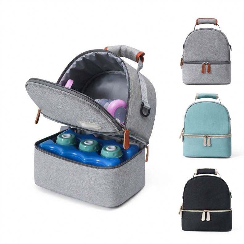 Double Deck Thermal Insulated Breast Pump Backpack Mummy Bag Diaper Tote Baby Bottle Bag Suitable for Mom Breast Milk Cooler Bag