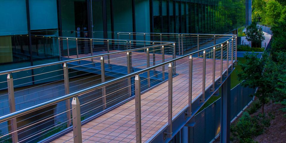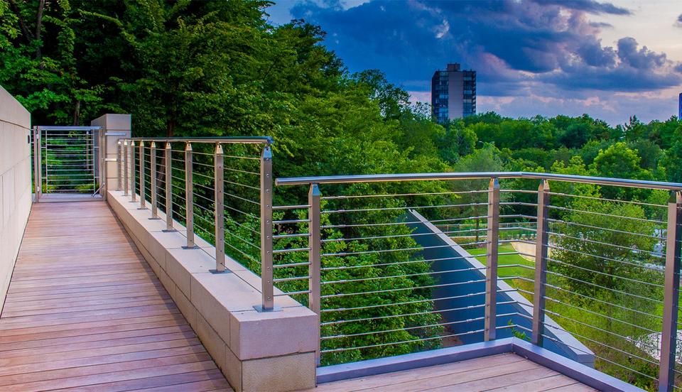 Balustrade à câbles double design en acier inoxydable, montée au sol, avec main courante à câbles