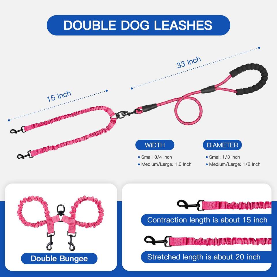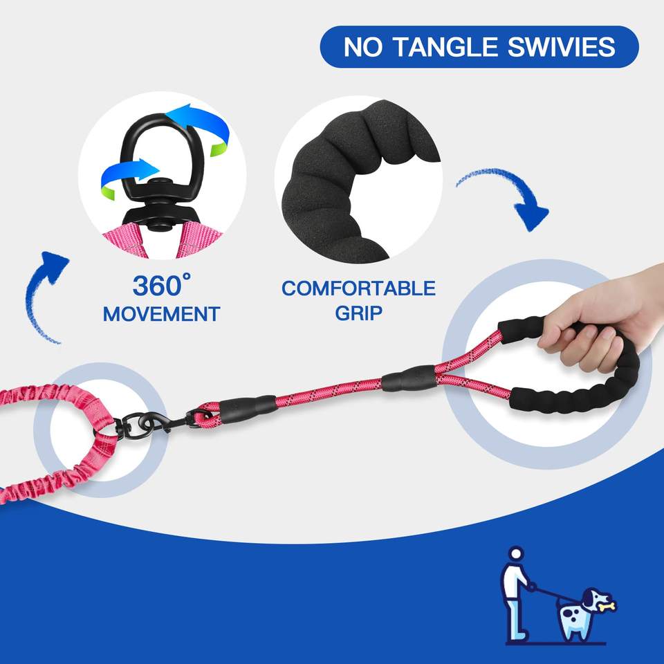 Caractéristique:Laisse double chien, poignée deux, réfléchissant, conception Bungee