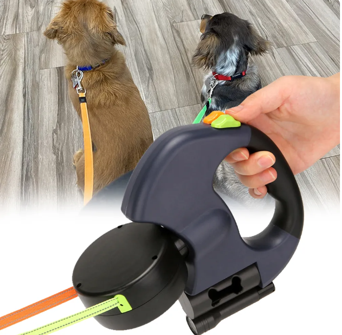 Laisse double pour chien Laisse de roulette rétractable Laisse de marche pour petits et grands chiens Corde de traction 3M Laisses longues pour deux chiens