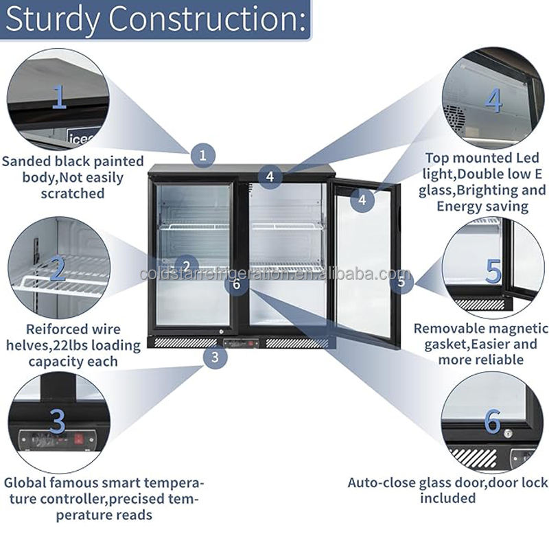 Réfrigérateur commercial à bière à double porte, à température unique, avec ventilateur de refroidissement, réfrigérateur de bar, sous le comptoir, dégivrage automatique