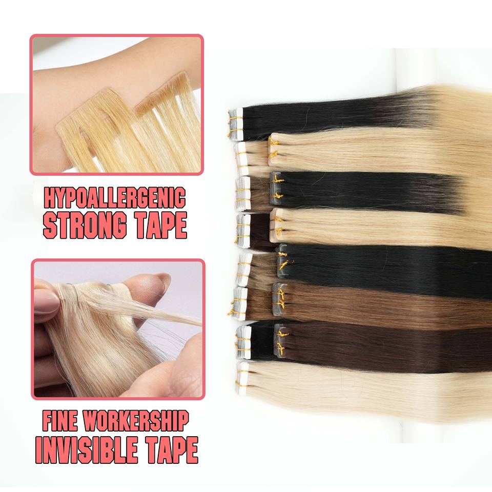 Nom du produit:Extension de cheveux à bande adhésive Double Dawn, cheveux humains russes lisses