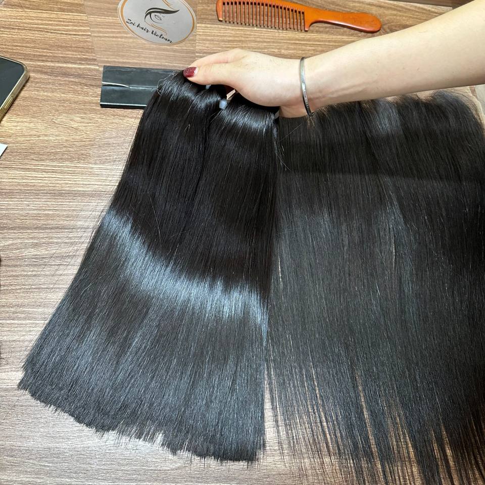 Double Drawn Silky Bone Straight Extensions de cheveux humains bruts vierges vietnamiens avec pour Lace Frontal pour perruques