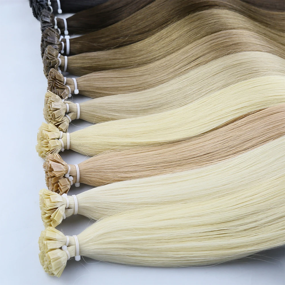 Extensions de cheveux à double pointe de cheveux pré-collés à la kératine Extensions de cheveux russes Remy 100% européens à pointe plate