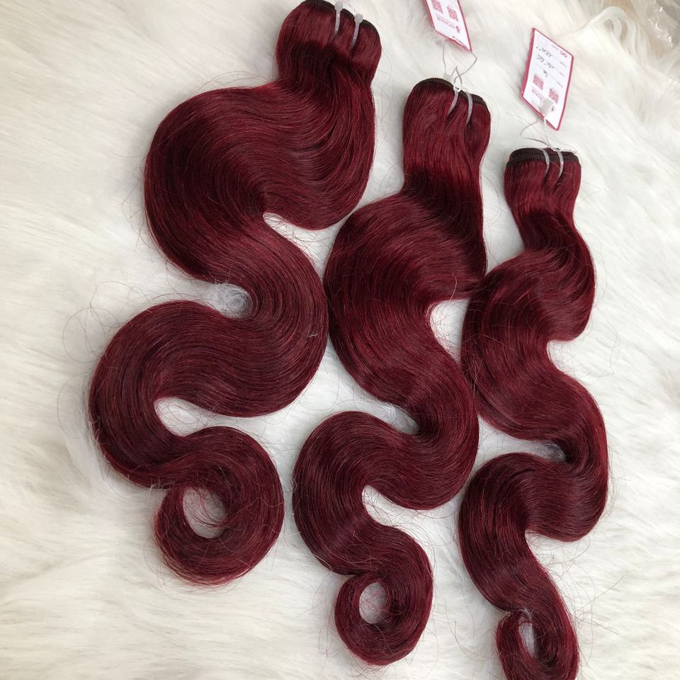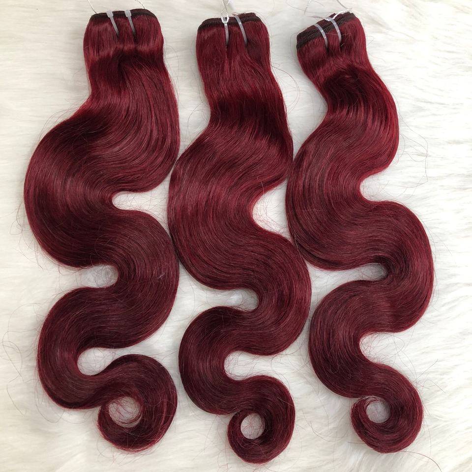 Double-Drawn Weft Remy Virgin Hair Extensions 100% Vietnamese Human Hair Raw Unprocessed Water Body Natural Wave Dark Red Color