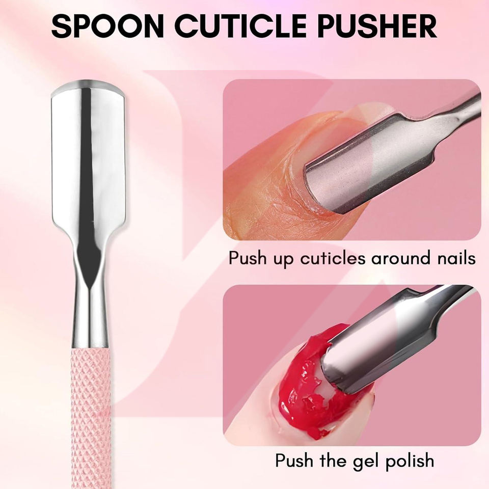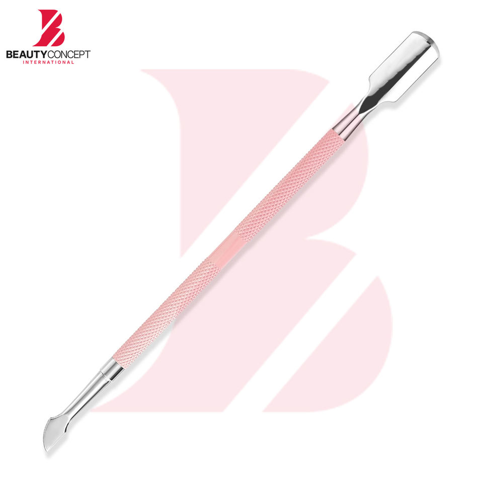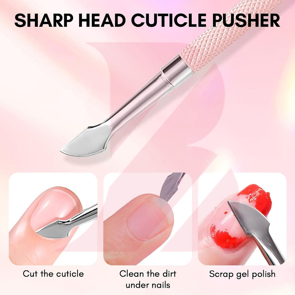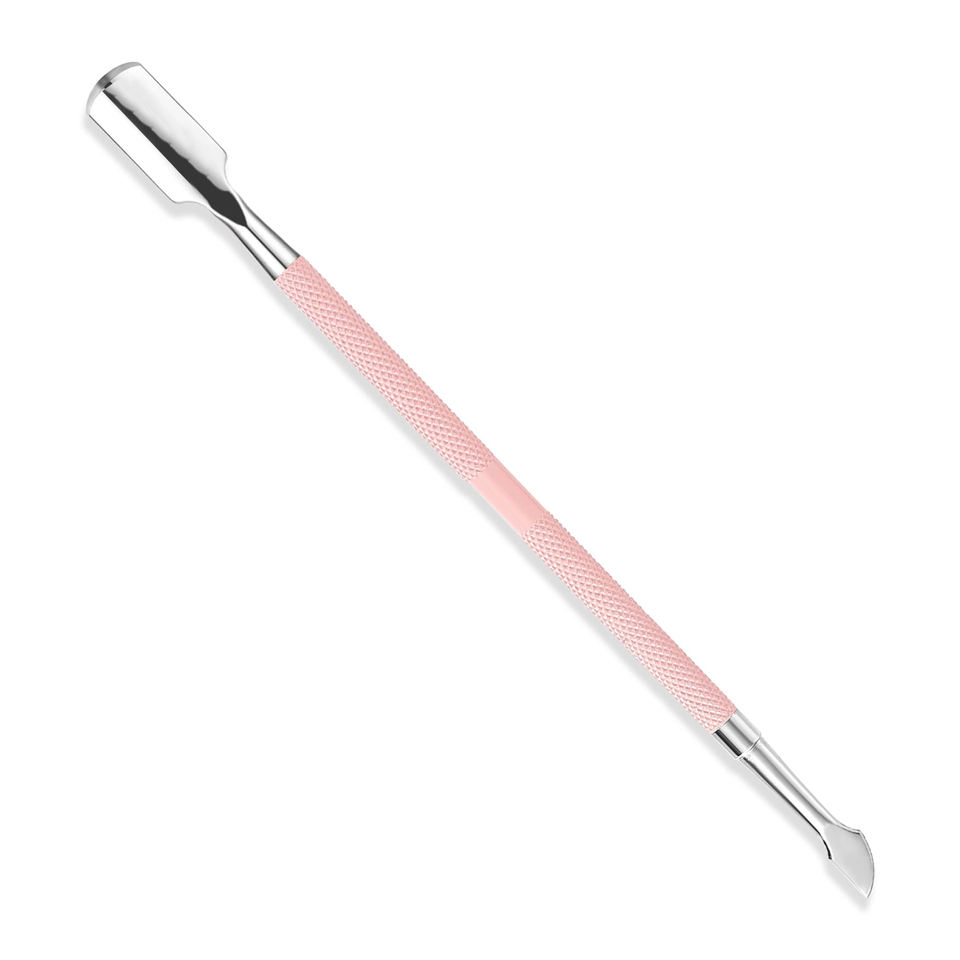 Pousse-cuticules double extrémité en acier inoxydable, manche rose antidérapant, résistant à la rouille, outil professionnel pour manucure