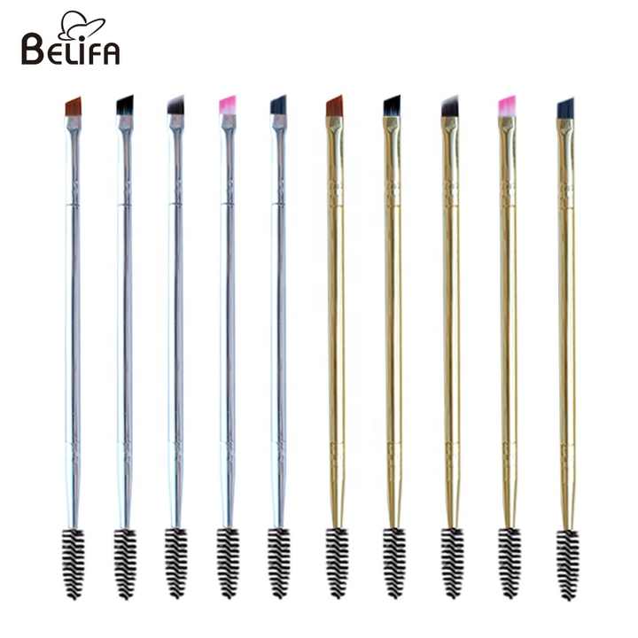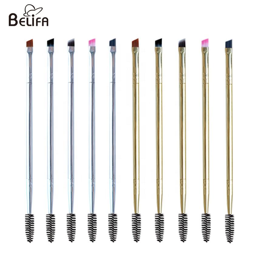 Double extrémité en métal pour sourcils spoolie mascara wand pinceau fin à angle fin pour maquillage et eye-liner