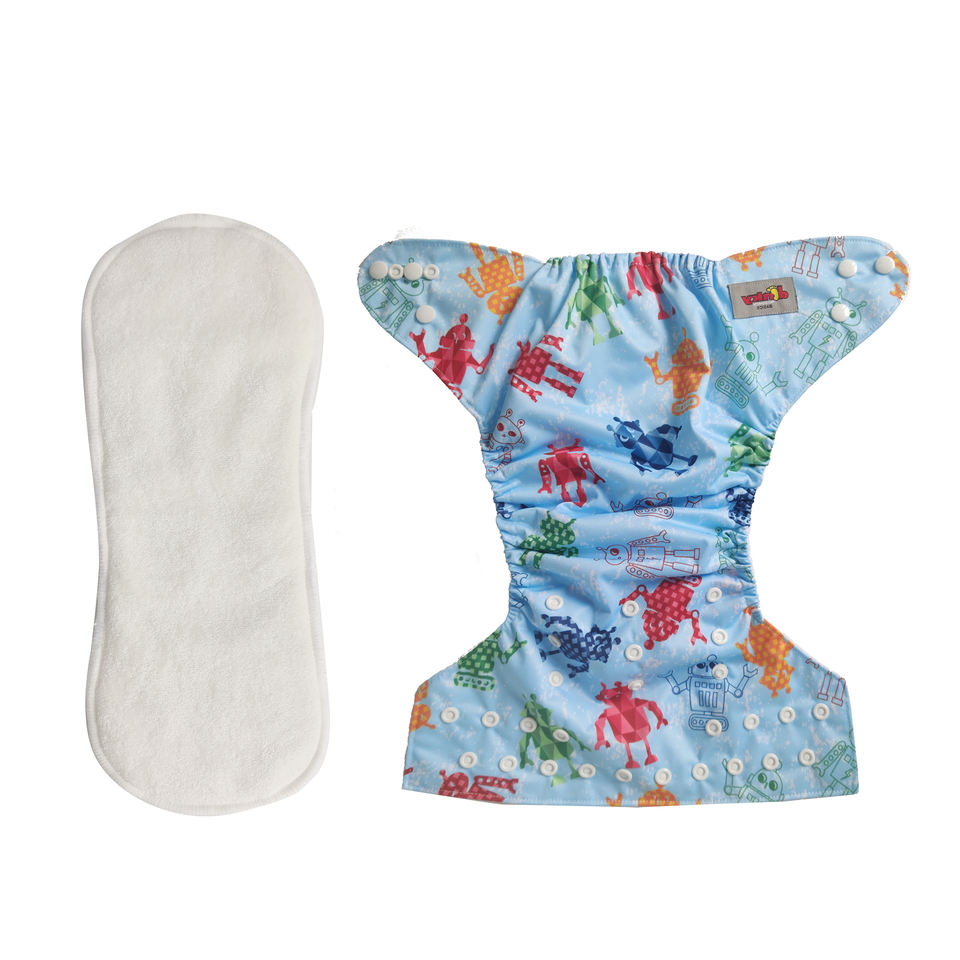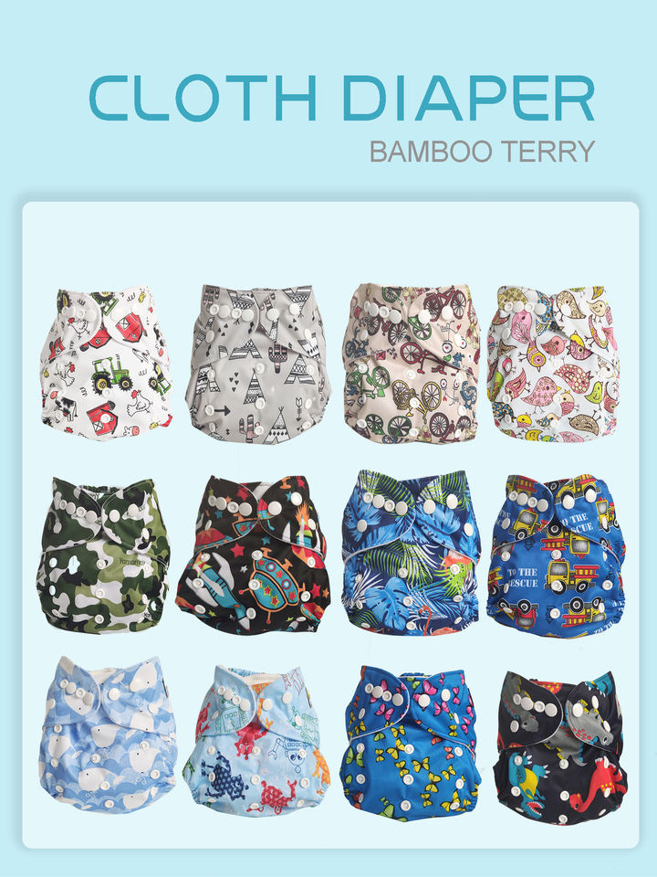 Double Gusset Waterproof Breathable Washable Baby Cloth Diaper with Bone Shape Bamboo Insert Reusable Cloth Nappies