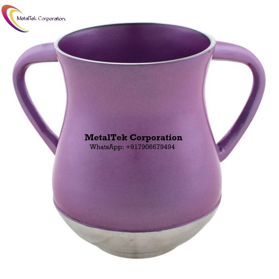 Gobelet à double poignée pour le netilat yadayim et le rituel juif, gobelet en métal massif à double poignée, couleur personnalisée, fabricant