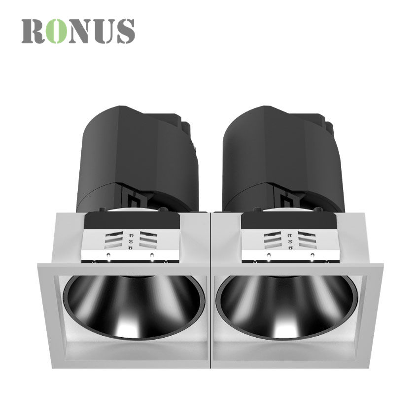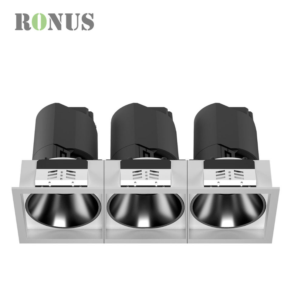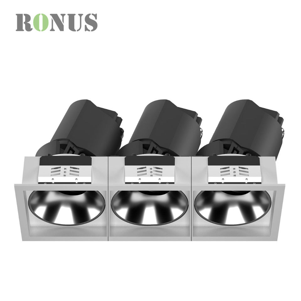 Double Tête Réglable Rotatif COB 7W * 3 Spot Down Light Encastré Rectangulaire LED Downlight