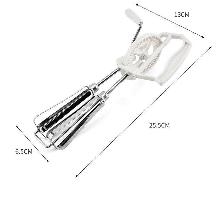 Outil à fouetter les liquides de cuisine en acier inoxydable à double tête Mélangeur à œufs rotatif manuel avec poignée en plastique à manivelle