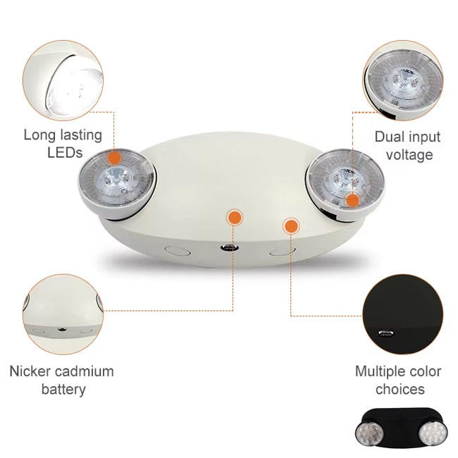 Lampe de Secours LED à Double Tête et Deux Points d'Éclairage avec Batterie de Secours pour Urgences
