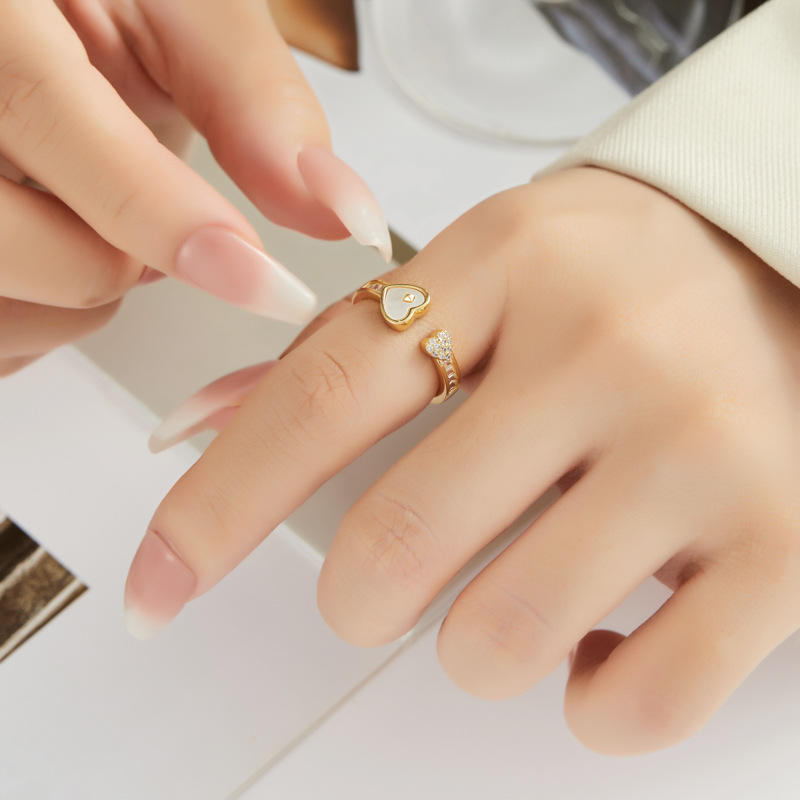 Bague ouverte ajustable en zircon plaqué or 18 carats avec micro-pavé en forme de double cœur, pour l'index, bijou de mode féminin, cadeau