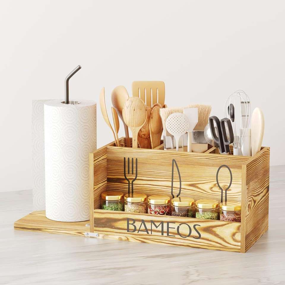 Support à vaisselle double pour comptoir de cuisine, type sur pied, style moderne, 2 niveaux, bois sculpté écologique