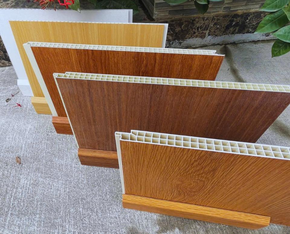 Panneau mural de cloison en PVC double laminé imperméable en bois plastique pour intérieur pour atelier extérieur salle de bain cuisine