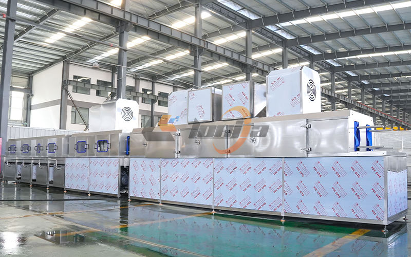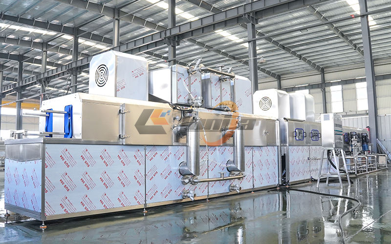 Laveuse-sécheuse à haute pression à double voie pour caisses de transport de volailles et plateaux à pain