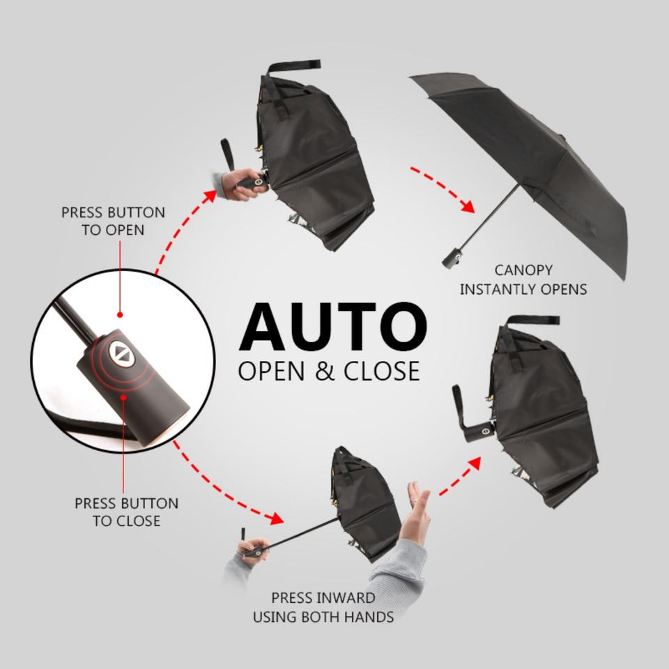Parapluie pliant 3 sections à ouverture manuelle et fermeture automatique