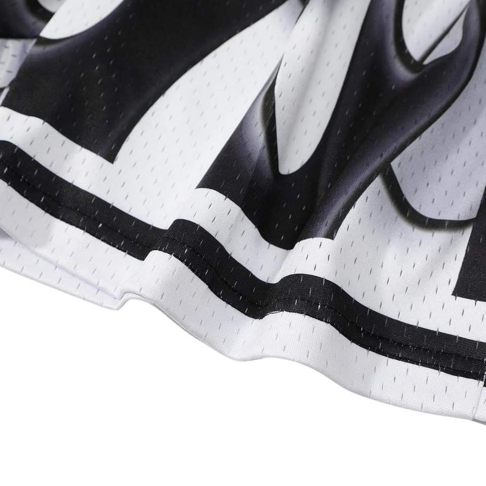 Short de sport personnalisé noir et blanc double couche, haute qualité, en mesh, prix bas, 100% polyester, sublimation, pour basketball.