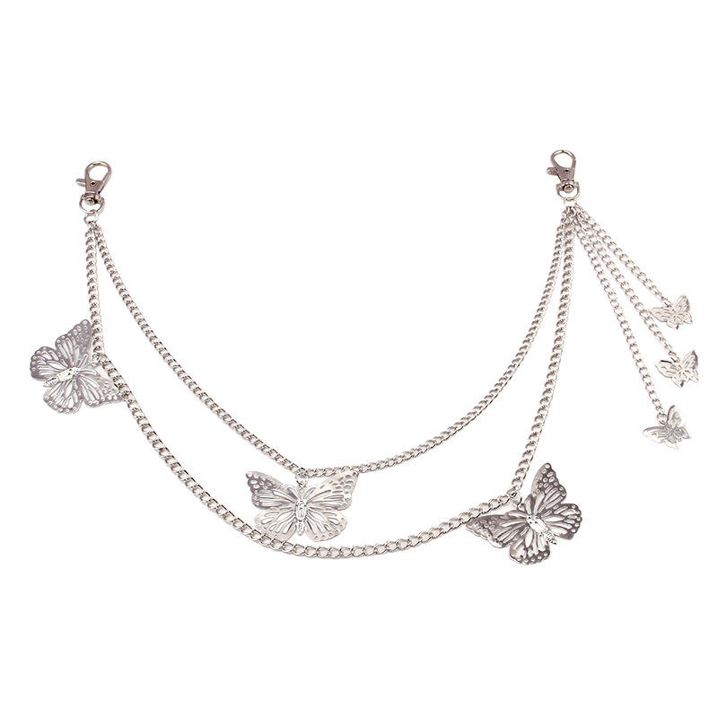 Chaîne de taille double couche en alliage de zinc, motif papillon, pour femme, à porter au quotidien, pour décorer les pantalons cargo