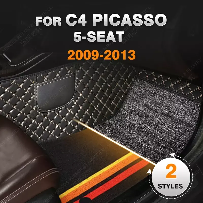 Tapis de sol de voiture double couche pour Citroën C4 PICASSO 5 places 2009-2013 12 11 Tapis de sol auto personnalisés Accessoires intérieurs automobiles