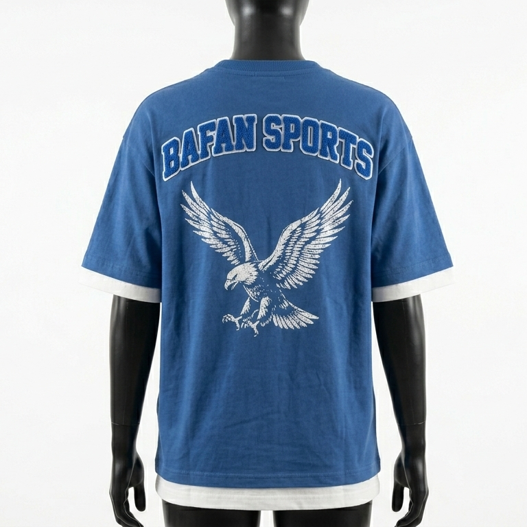 Double Layer Cotton Polyester Blend Blue With White Inner Premium T Shirt Custom Embroidery Logo Cotton Double Layer Shirts