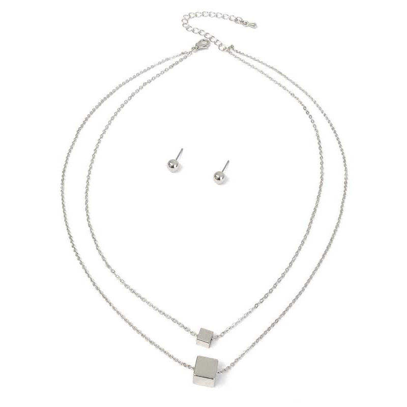 Ensemble de colliers pendentifs cubes double couche pour femmes, chaîne réglable à deux niveaux en alliage de zinc, tendance