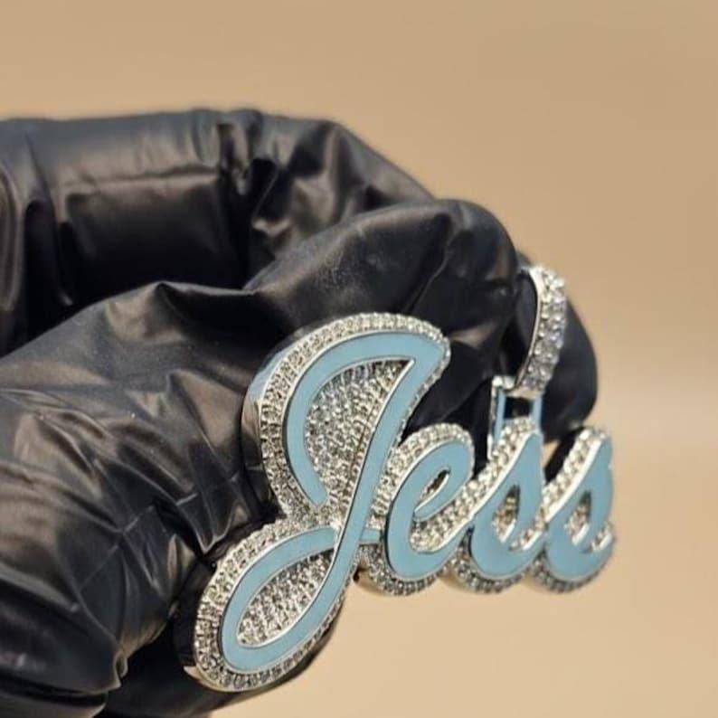 Pendentif double couche en lettres cursives, serti de pierres, en argent 925, bicolore, personnalisable avec nom, initiales, pour femme
