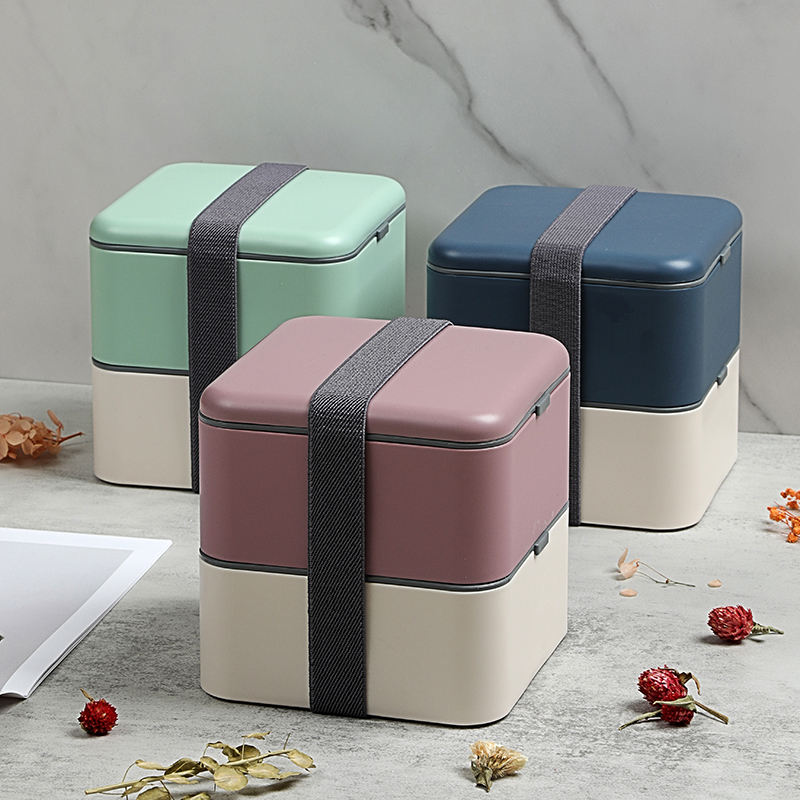 Boîte à lunch double couche avec compartiments indépendants, anti-fuite, conteneur alimentaire portable