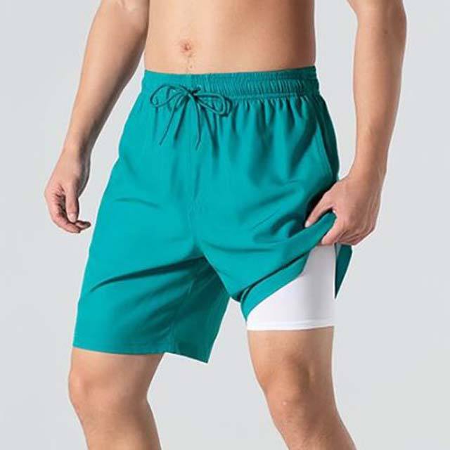 Short double couche pour homme Taille haute Cordon de serrage Qualité supérieure Style de rue Coton Polyester Couleur personnalisée Short d'été pour homme