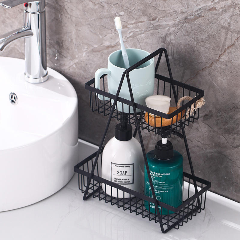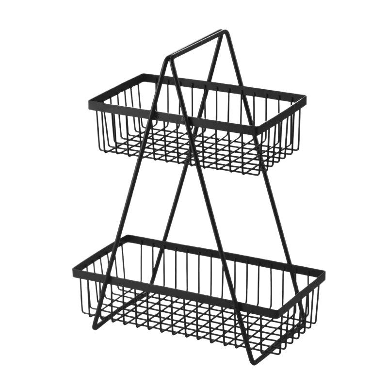 Panier à fruits en métal à double couche, support de rangement rectangulaire, multifonctionnel, portable, type sur pied, facile à nettoyer, récipient alimentaire