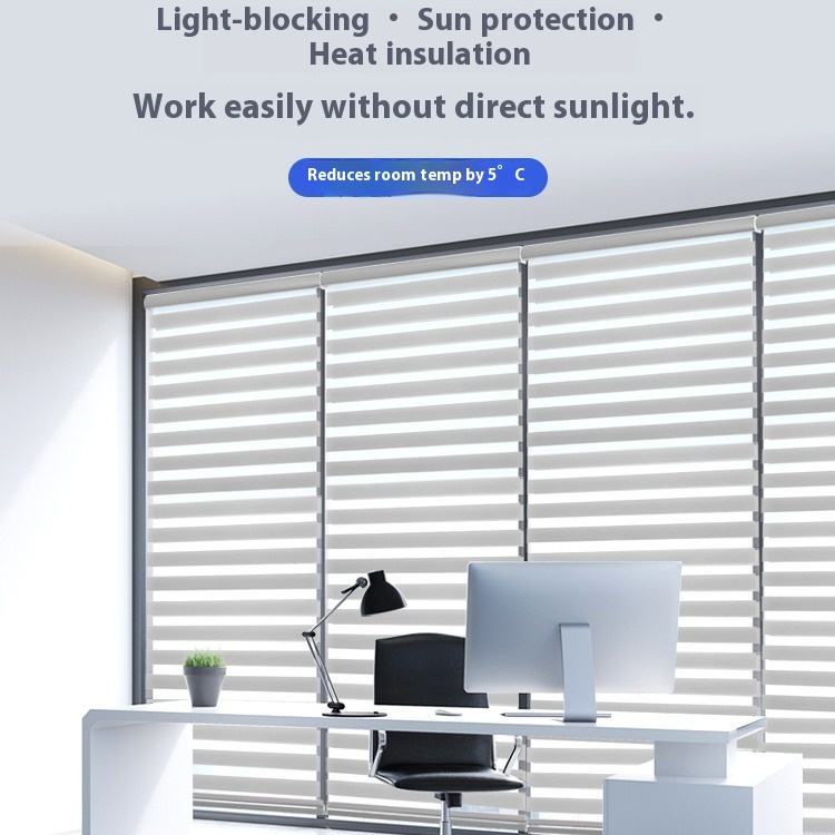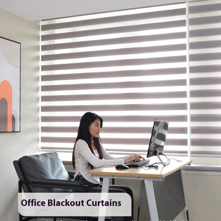 Stores roulants électriques double couche pour étude de bureau Parasol occultant doux motif zèbre Shangri-La Stores vénitiens verticaux
