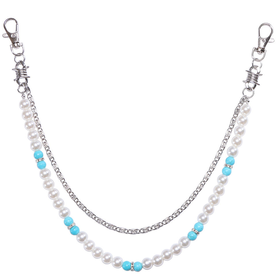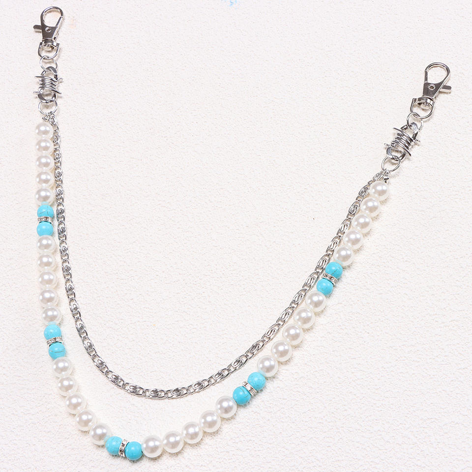 Chaîne de taille double couche en perles turquoise pour jeans, usage quotidien, chaîne de corps tendance en perles d'imitation